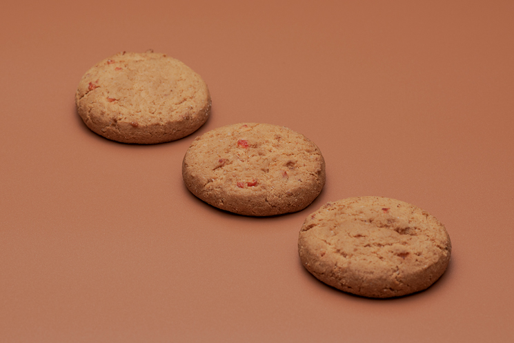 Suave galleta de mantequilla con trocitos de marrasquino confitado, un clásico lleno de sabor y dulzura en cada mordisco.