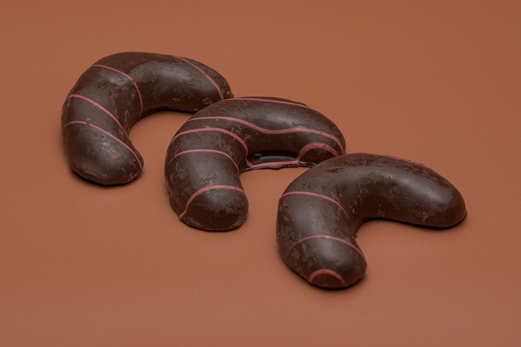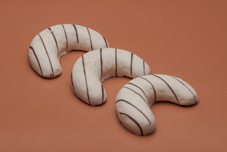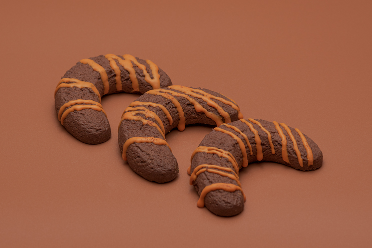Una galleta de harina de trigo con un delicioso sabor a mantequilla, con una encantadora forma de media luna. Está bañada y decorada con chocolate, ¡una delicia celestial que te hará soñar despierto/a!