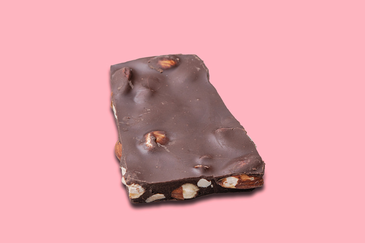 Trozo de Almendras, una deliciosa mezcla de chocolate bitter con leche y crujientes almendras tostadas. Un placer irresistible en cada bocado.